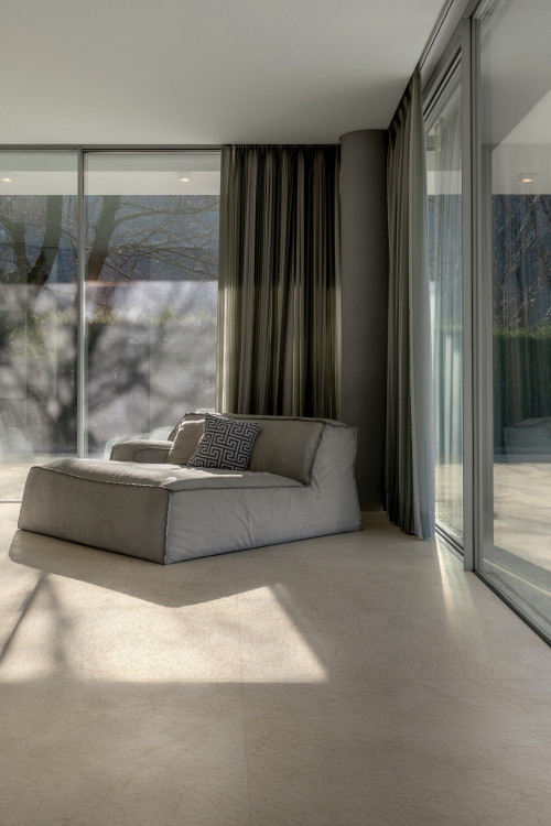 LAMINAM COLLECTION NEVE 100x300; A neve nem csak csempe, hanem érzés: semleges árnyalata és ezüstös fénye havas hegycsúcsok hangulatát idézi, frissességet és eleganciát adva a térnek.