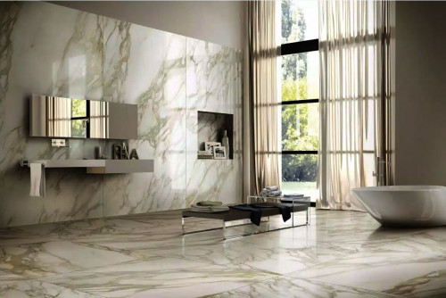 ÉTOILE CREME 120X280- A ritka márványok ihlette, csiszolt fényű burkolat meleg bézs–krém árnyalatával elegáns és otthonos hangulatot teremt.