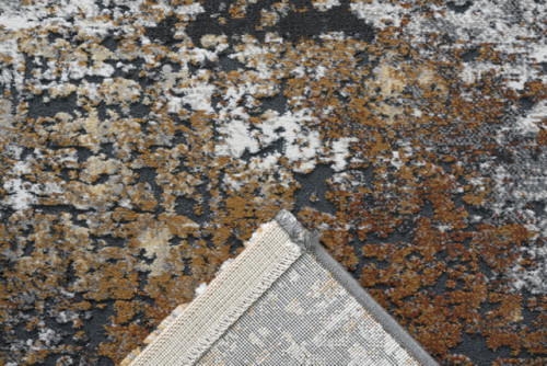 Ez a modern szőnyeg a koptatott felület rusztikus karakterét és a meleg, rozsdás színvilág természetességét ötvözi. A fehéres és sötétszürkés alapot finom, rozsdabarna tónusok élénkítik, amelyek melegséget visznek a térbe anélkül, hogy túl harsánnyá válnának. Az enyhén "antikolt" hatás egyedi, vintage stílust idéz, így tökéletesen illik modern, loft vagy akár bohém enteriőrbe is.