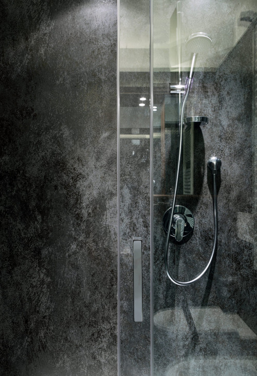 LAMINAM OXIDE NERO 100x300; Az Oxide Nero mély fekete és antracitszürke árnyalataival kifinomultságot, időtlenséget és modern hangulatot ad a térnek, beltéri és kültéri használatra egyaránt alkalmas.
