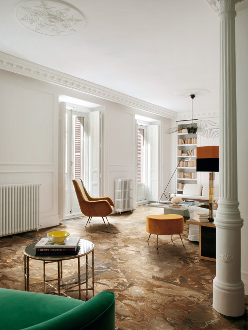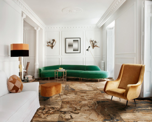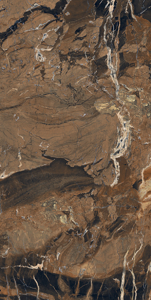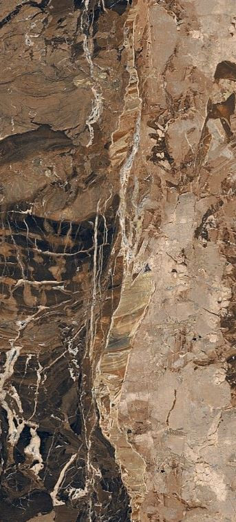 LES BIJOUX JASPE ROUGE MATT; 120X280- A természet keringője bontakozik ki, barlangszerű mélységgel, ahol a földszínek ereje és szenvedélye határozza meg a tér hangulatát.