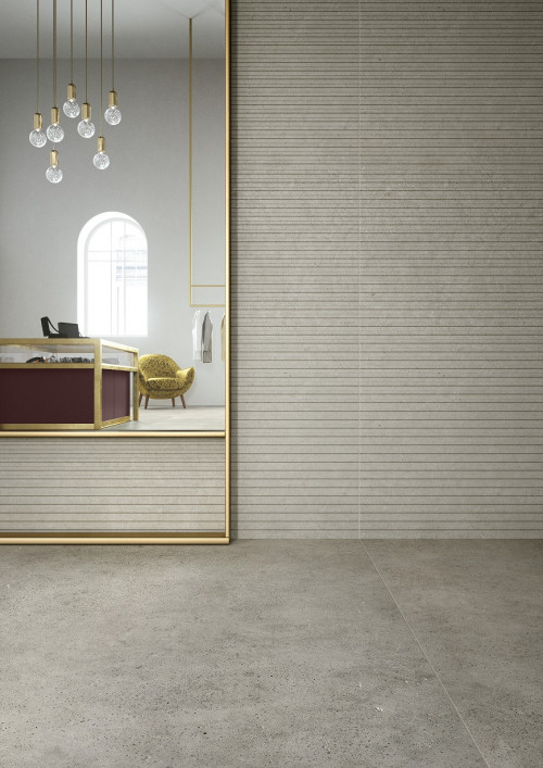 MATRICE SOSTANZA 120x240- Ez a Holdat idéző szürke nagy csempe a nőiesség és megújulás szimbóluma; matt, egységes felülete kifinomult, kellemes tapintású.