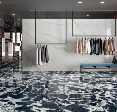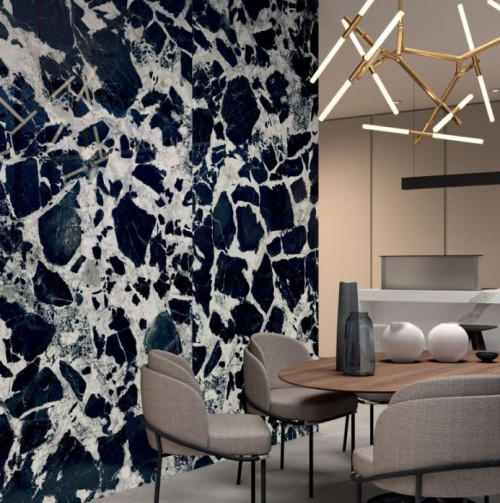 SENSI UP GRAND ANTIQUE 120x280- A Grand Antique márvány mélykék és bézs árnyalataival eleganciát, egyensúlyt és nyugalmat ad a térnek, miközben a sötétkék stabilitást és komolyságot sugároz.