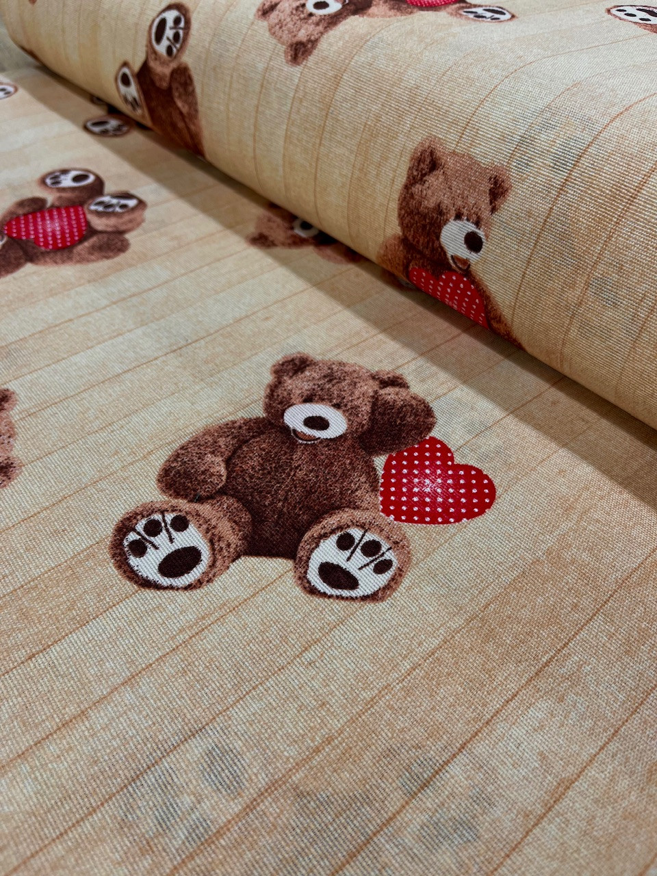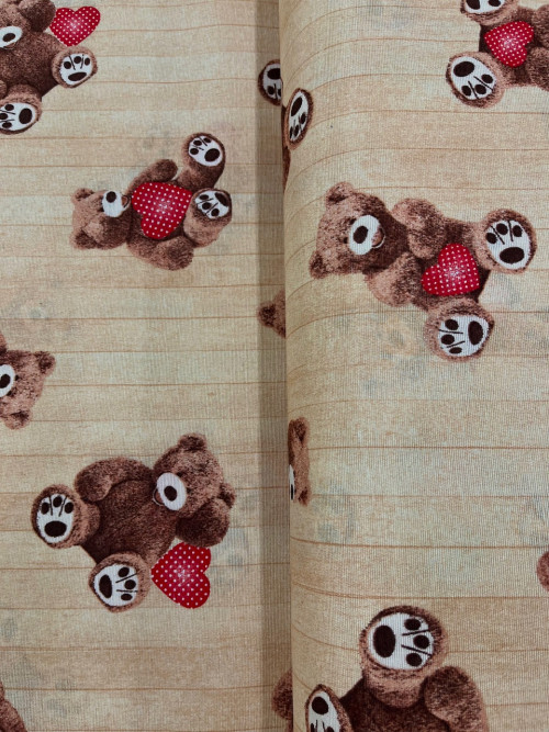 Bézs alapon aranyos mackó és szívecske minta