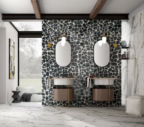 THE ROOM Grand Anti 120x260- Ez a csempe az erő és lágyság harmóniája: a fekete eleganciát, a fehér tisztaságot sugall. Időtálló, luxus hatású választás, fényes, polírozott gres-porcelán kivitelben, kül- és beltérre is ideális.