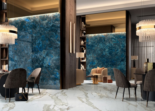 WANDERLUST-X LABRADORI- 120x278- Ez a nagy csempe a befagyott tó hangulatát idézi: kék tónusai nyugalmat és biztonságot sugallnak, barna erezete pedig karaktert ad, így otthonában igazán különleges, hangsúlyos elem lehet.